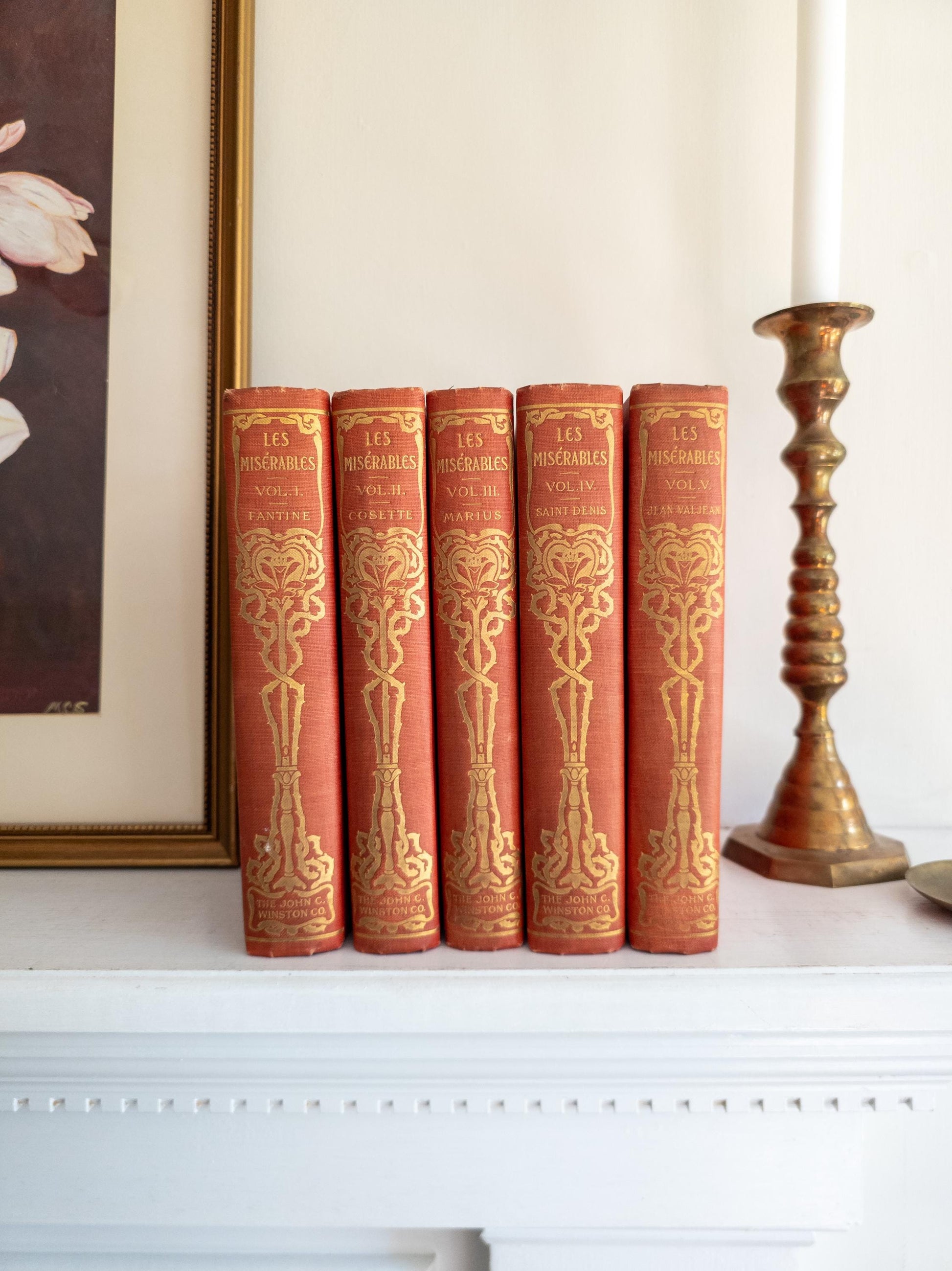 Five illustrated volumes of the beloved story by Victor Hugo, Les Miserables.